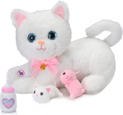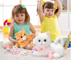 Roztomilá interaktívna mačka s dvoma mačiatkami a fľaštičkou prináša hodiny zábavy aj upokojujúceho túlenia. Vďaka funkciám ako nahrávanie a prehrávanie, mňaukanie a pradenie, melódie a pesničky a reakcie na hladkanie a kŕmenie sa deti naučia starať a rozvíjať fantáziu. Mačiatka sú ukryté v brušku maminky a hračka je vyrobená z mäkkého, príjemného plyšu.