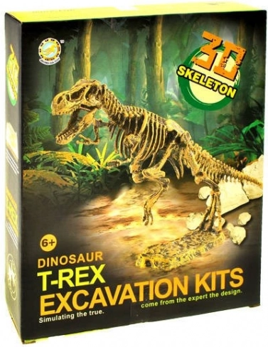 Táto interaktívna súprava simuluje skutočné paleontologické vykopávky. V sadrovom bloku sú ukryté repliky kostí Tyrannosaura rexa, ktoré pomocou priložených nástrojov postupne odkryjete, očistíte a zložíte do detailného skeletu vhodného na vystavenie.