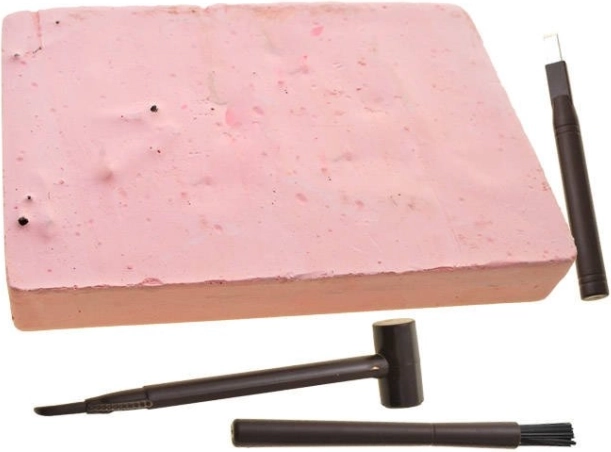 - Kompletná výbava: blok, kladivko so škrabkou, dlátko a štetec