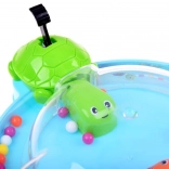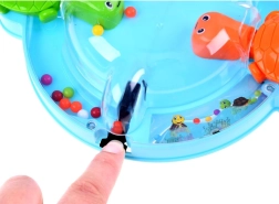 Hra trénuje zručnosť, reflexy a učí deti rozoznávať farby. Je ideálna pre skupinovú hru s kamarátmi alebo príjemné chvíle v rodine. Všetci sa usadia pohodlne okolo kruhovej základne, stlačia páku, čím korytnačky otvoria ústa a pokúsia sa zachytiť valiacie sa guličky.