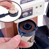 Táto realistická sada umožní deťom otvoriť si vlastnú kaviareň: pripravia „espresso“, vystavia zákusky do vitríny a na pokladni namarkujú objednávku. Kávovar s prietokom vody po naliatí vody zhora a vložení portafiltera „uvarí“ kávu so svetelnou signalizáciou (červená počas prípravy, zelená po dokončení) a zvukmi mletia aj nalievania. Pokladňa má otočný panel, pípne pri platbe kartou a vydáva zvuk pri otvorení.