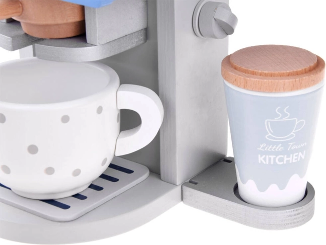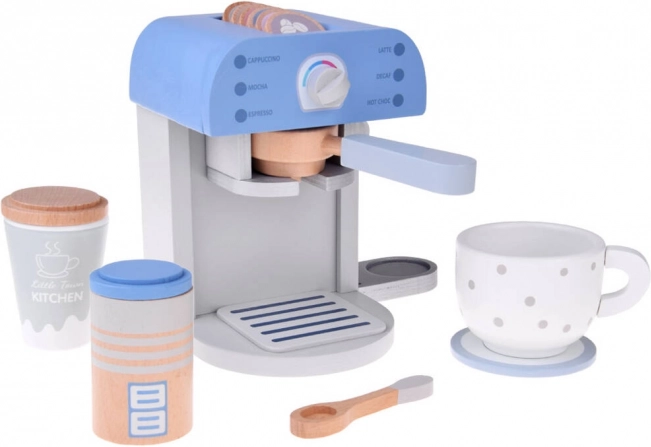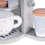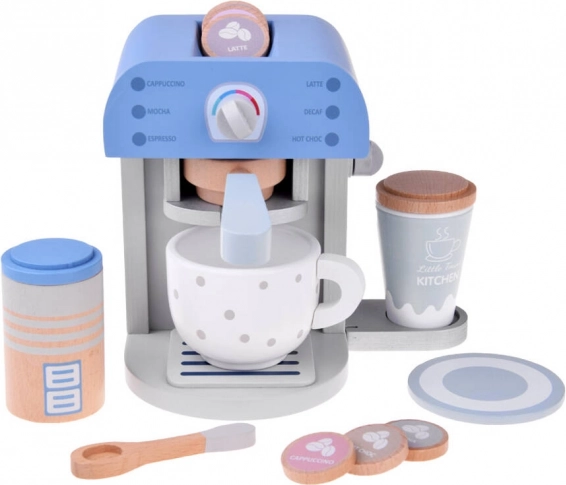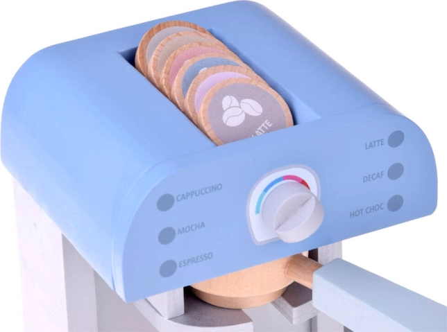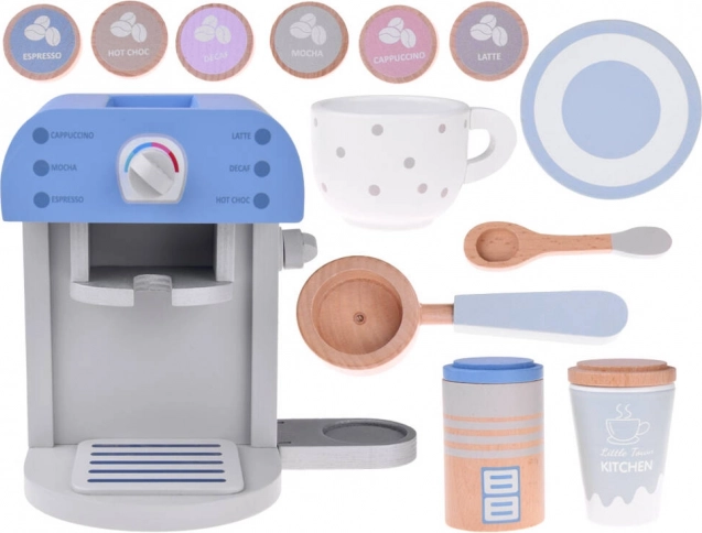 Drevený kávovar pre deti v elegantnej modrej farbe je perfektnou hračkou pre každú detskú kuchyňu. Tento štýlový a kvalitne vyrobený set zahŕňa kávovar a doplnky, ktoré zabezpečujú zábavnú a vzdelávaciu hru.