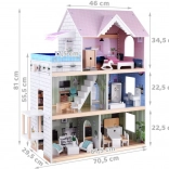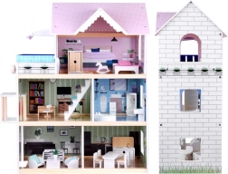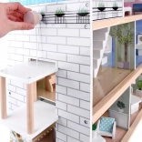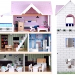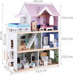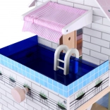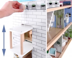 Tento nádherný domček pre bábiky vám prináša realistický a štýlový dizajn, ktorý očarí každé dieťa. Domček disponuje tromi poschodiami plnými detailne vybavených miestností: spálňa, obývačka, kúpeľňa, kuchyňa a denný pokoj. Pohyblivý výťah a štýlový bazén na terase pridávajú na atraktivite a poskytujú priestor pre kreatívnu hru.