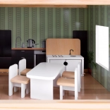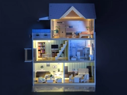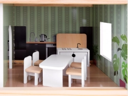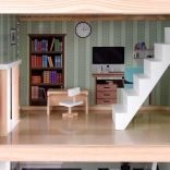 Domček je starostlivo navrhnutý s realistickou grafikou a dreveným nábytkom, ktorý dodáva pocit skutočného života.