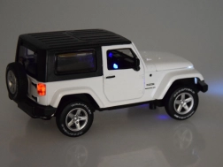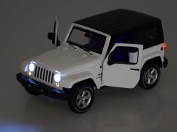 Jeep Wrangler 1:32 je krásny model s dôrazom na detail, ktorý poskytuje realistické zvukové a svetelné efekty. Vozidlo má otváracie dvere, kapotu a je vybavené systémom „pull back“, ktorý umožňuje jeho pohyb po hladkej ploche. Pri otvorení dverí sa spustí alarm s blikajúcimi svetlami, čo zvyšuje zábavnosť hry. Znázornenie motora a detailov interiéru dodáva hračke autentickosť.