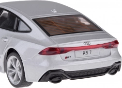 Verný model AUDI RS 7 v mierke 1:35 poteší deti aj zberateľov. Kovová karoséria, otváracie dvere a svetelné a zvukové efekty prinášajú realistický zážitok. Vďaka pohonu na spätný ťah (friction power) sa model po natiahnutí sám rozbehne, gumové kolesá zabezpečujú plynulú jazdu a batérie LR44 sú súčasťou balenia.