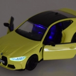 Kovové auto BMW M4 v mierke 1:32 je skvelým prírastkom do každej zbierky modelov áut. Tento športový voz je precízne a esteticky spracovaný s veľkou starostlivosťou o každý detail, čo určite poteší každého malého vodiča. Autíčko má otváracie dvere a ponúka zvukové aj svetelné efekty. BMW je vybavené pohonom typu friction power, čo znamená, že po posunutí dozadu na hladkom povrchu vyrazí dopredu. Vozidlo je možné pohybovať aj tlačením.