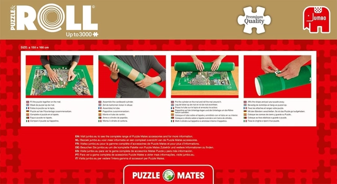 Praktická rolovacia podložka JUMBO je skvelým pomocníkom pre všetkých milovníkov puzzle. Zelený filcový povrch udrží dieliky na mieste a umožní vám zrolovať rozložené puzzle bez obáv, že sa čokoľvek presunie alebo stratí. Podložka je ideálna na skladovanie doma aj na cestovanie.