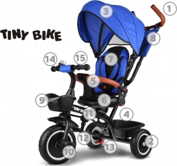 Detský trojkolesový bicykel 3v1 s strieškou TINY BIKE – Modrá