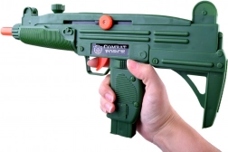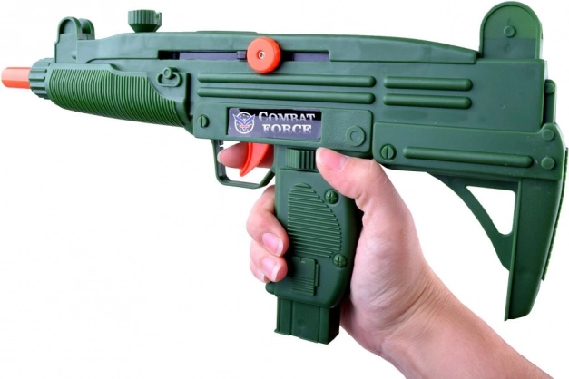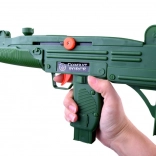 Krátka pištoľ so zvukovými efektmi (batérie AG13 sú súčasťou) a naťahovacia puška pre akčné zážitky pri bezpečnom hraní.