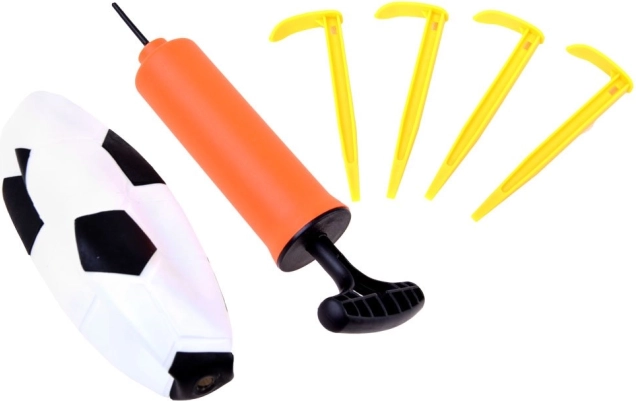 Set je kompletný hneď po vybalení: priložená pumpička nafúkne loptu behom chvíľky a zemné kolíky udržia bránku stabilnú aj pri energickejšej hre. Deti si pri hre zlepšia vytrvalosť, silu a koordináciu a zároveň sa učia tímovej spolupráci a zásadám fair play.