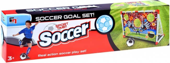 Súčasťou balenia je bránka so sieťou, lopta, pumpička a 4 kolíky na ukotvenie – všetko, čo deti potrebujú na okamžitú hru.