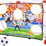 Farebná plachta s cieľovými otvormi podporuje zábavnou formou rozvoj techniky a presnosti streľby u malých futbalistov.