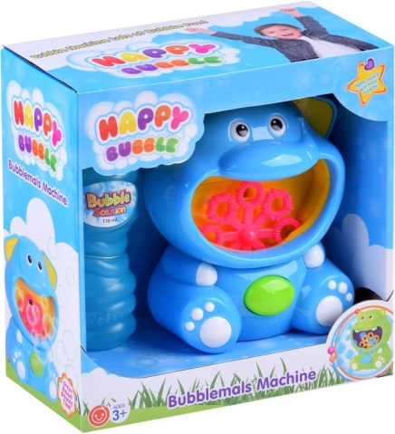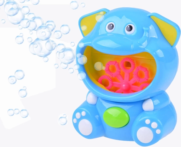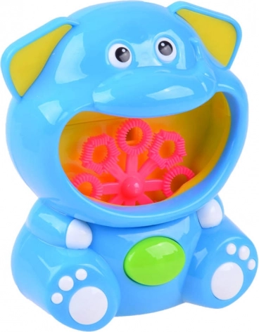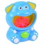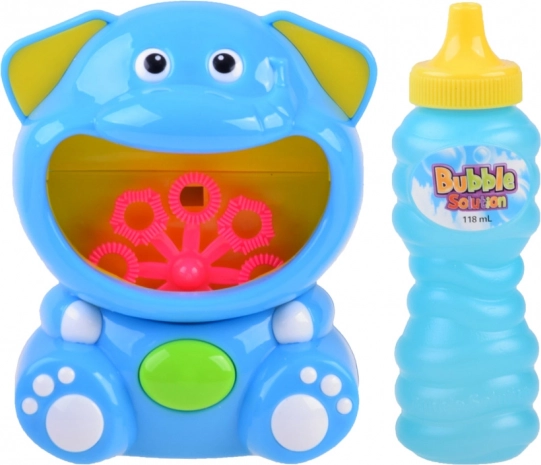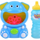 Súčasťou je plastový automat v tvare slona a fľaštička s bublinovým roztokom – začať môžete hneď po vložení batérií.