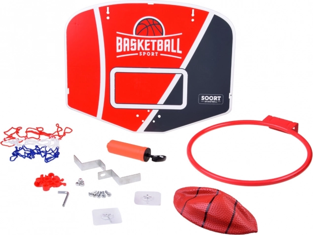 - Kompletná súprava: doska, obruč, sieť, lopta, pumpička a montážne držiaky