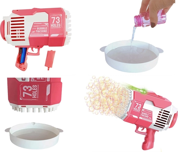 Elektrická pištoľ na bubliny so 73 otvormi – Ružová
