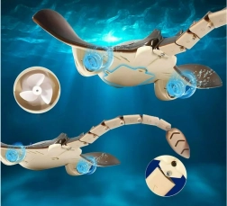 Táto plávajúca manta na diaľkové ovládanie verne napodobňuje pohyb skutočnej raje. Pokročilá mechanika chvostovej a prsných plutiev zabezpečuje realistické plávanie a jednoduché ovládanie všetkými smermi. Ideálna na letné vodné radovánky aj domáce experimenty vo vani.