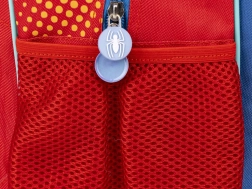 Hlavná priehradka s predným vreckom na zips a bočným sieťovaným vreckom uľahčuje organizáciu školských potrieb.