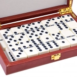 Domino je logická hra, kde sa používajú doštičky nazývané kamene. Každý kameň je rozdelený na dve štvorcové polia s označenými bodkami, podobne ako kocka na hádzanie. Táto najpopulárnejšia verzia obsahuje 28 kameňov s kombináciami čísel od 0 do 6. Hra je navrhnutá pre 2 až 4 hráčov. Perfektné pre rodinné večery a stretnutia s priateľmi.