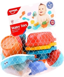 Premeňte kúpanie na radosť a zábavu! Táto bohatá vodná sada obsahuje sieťku s prísavkou, loďky, skladacie kelímky, rozkladacie gule a plávajúce gumové zvieratká. Vďaka pestrým farbám a rôznorodým aktivitám podporuje jemnú motoriku, koordináciu oko–ruka aj kreatívnu hru vo vode. Praktická prísavka umožní zo sieťky urobiť organizér na hračky, takže kúpeľňa bude vždy uprataná.