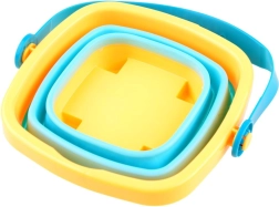 Vďaka použitiu flexibilného silikónu na stenách a tvrdšieho plastu na dne a okrajoch lze vedierko ľahko zložiť po skončení hry. Zaberie menej miesta a ľahko sa prenáša a skladuje. Formičky majú malé otvory, takže je možné použiť aj ako kelímky na vodu.