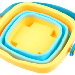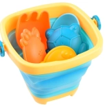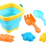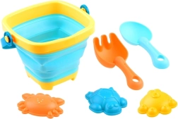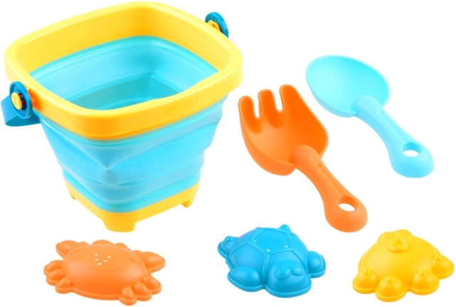 Obsahuje všetko, čo deti potrebujú pre kreatívnu hru v piesku: skladacie vedierko, lopatku, hrabličky a tri formičky.