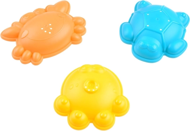 Tri formičky s motívmi kraba, korytnačky a chobotnice zabezpečia veľa zábavy. Každá má otvory pre ľahké uvoľnenie piesku.