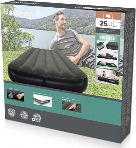 Jednolôžkový nafukovací matrac s rozmermi 188 × 99 × 25 cm z odolného materiálu TRITECH s vnútornou konštrukciou I‑beam pre stabilitu a pohodlie. Rýchly dvojcestný ventil uľahčuje nafukovanie aj vyfukovanie a mäkký vinylový povrch je príjemný na dotyk. Nosnosť až 300 kg, ideálny do domácnosti aj na kempovanie.