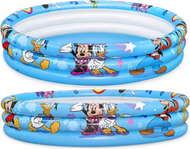 Ľahký a prenosný nafukovací bazénik Bestway s licencovanou grafikou MICKEY & FRIENDS je stvorený pre detské vodné hry na záhrade. Tri samostatné prstence držia tvar a pomáhajú lepšie udržať vzduch, zatiaľ čo mäkký, testovaný vinyl zaručuje pohodlie aj odolnosť pri každodennom používaní.