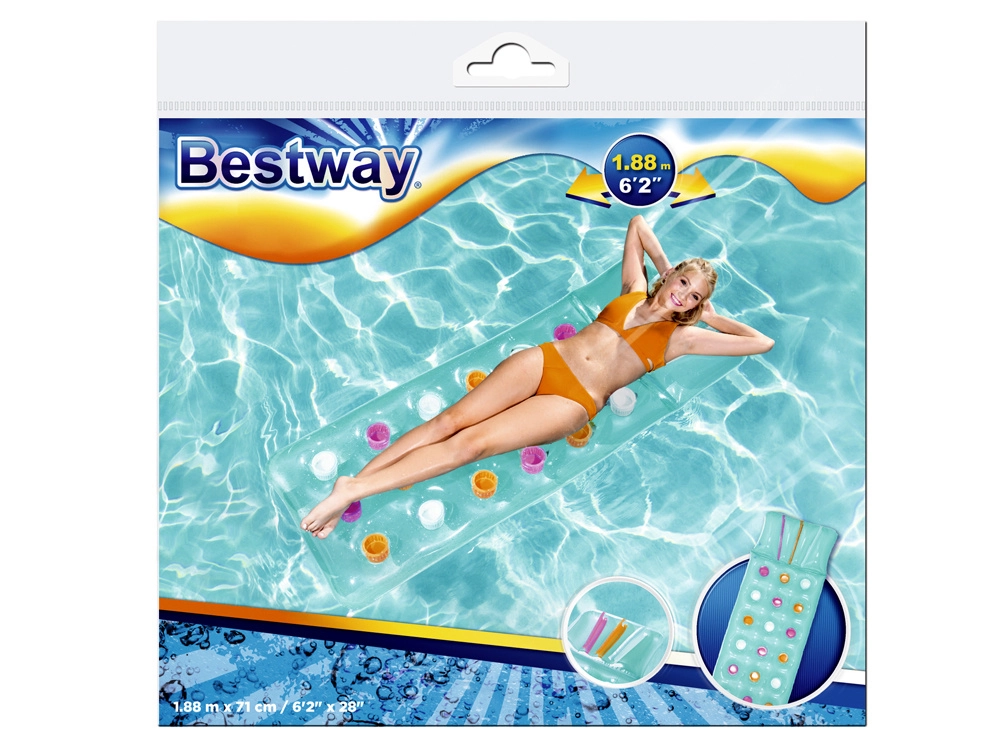 Táto plážová matrac BESTWAY je ideálna na relax v bazéne, pri jazere aj pri mori. Veľkorysá plocha 188 × 71 cm pohodlne pojme dospelého a integrovaný vankúš poskytne príjemnú oporu hlavy.
