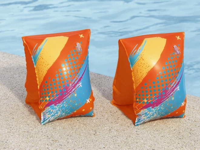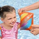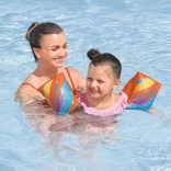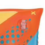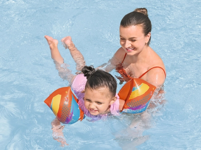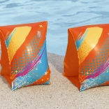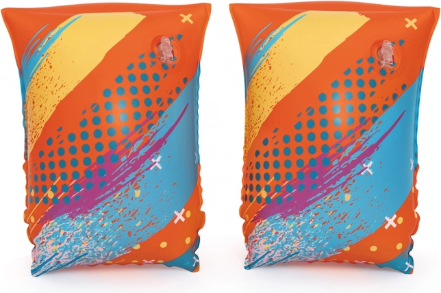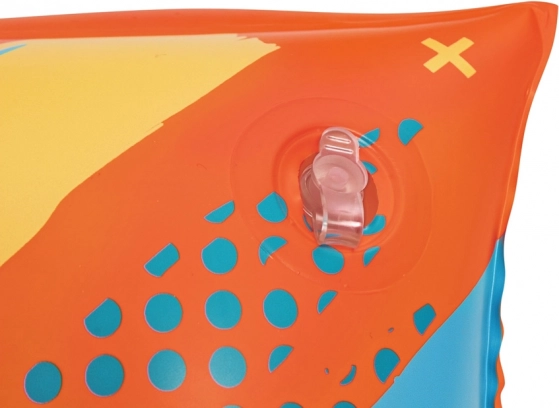 Bezpečnosť podporujú dve samostatné komory s ventilmi, ktoré udržiavajú stabilný vztlak. Výrazná oranžová farba s hravou grafikou zvyšuje viditeľnosť dieťaťa aj na rušných kúpaliskách. Ideálne pre hmotnostné rozmedzie 19–30 kg.