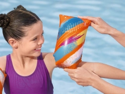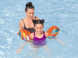 Výrazná oranžová farba a letná grafika s motýľmi zaisťujú skvelú viditeľnosť v bazéne, na jazere aj pri mori. Rukávniky sú ideálne pre deti vo veku 5–12 rokov s odporúčanou hmotnosťou 24–60 kg.
