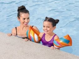 Farebné nafukovacie rukávniky BESTWAY L/XL s motívom motýľov pre deti od 5 do 12 rokov zaistia bezpečnú podporu pri učení plávania. Vďaka 2 nezávislým vzduchovým komorám a odolnému materiálu TPU sú ľahké, pohodlné a dobre viditeľné vďaka jasne oranžovej farbe.