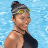 Odolné polykarbonátové šošovky chránia zrak vďaka UV filtru a ich antifog povrchová úprava minimalizuje zahmlievanie pre krištáľovo čistý obraz pri tréningu aj rekreačnom plávaní. Okuliare sú 100 % bez latexu, takže sú šetrné k citlivej pokožke.