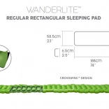 Súčasťou balenia je karimatka s rozmermi 188 cm x 58,5 cm x 6,5 cm, vak na uskladnenie a opravná záplata.