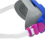 Maska s mäkkým silikónovým tesnením a nastaviteľným remienkom sa prispôsobí detskej tvári a drží pevne pri každom zábere.