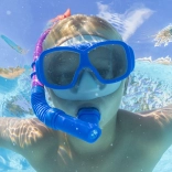 Set je navrhnutý pre deti od 7 rokov, je bez latexu a odolá každodennému používaniu. Ideálny na tréning plávania, prvé podvodné dobrodružstvá aj rekreačné šnorchlovanie.