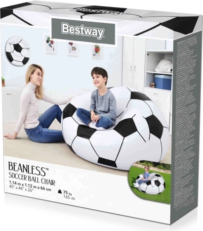 Užite si pohodlie a štýl s týmto unikátnym nafukovacím kreslom, ktoré kombinuje praktickú funkčnosť s moderným dizajnom inšpirovaným futbalom. Ideálne je pre detskú izbu alebo záhradu.