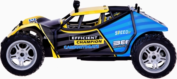 Volantový ovládač 2,4 GHz poskytuje spoľahlivé spojenie bez rušenia a presné ovládanie všetkých smerov: vpred/vzad aj plynulé zatáčanie vľavo/vpravo. Ergonomická spúšť a volant uľahčujú riadenie aj začiatočníkom.