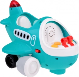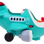 Interaktívne lietadlo v hravých farbách je skvelé prvé vozidlo pre batoľatá. Deti môžu pilotovať pomocou bezdrôtového ovládača alebo sledovať, ako sa lietadlo pohybuje samo a mení smer po kontakte s prekážkou. O zábavu sa starajú melódie, realistické zvuky a blikajúce červené svetlo v rytme hudby.