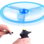 Ovládanie je jednoduché: nasadíte disk na rukoväť, potiahnete za šnúrku a sledujete, ako sa vrtuľa vznesie. Odolný plast a aerodynamický dizajn podporujú stabilný let a opakované používanie.