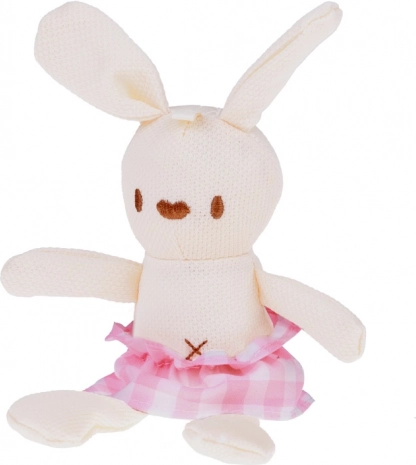 Súčasťou sady je hebký zajačik v kockovanej sukničke – ideálny kamarát na túlenie aj fantazijné hry.