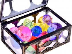 - 1× dekoratívna truhlica, 17× farebný plastový kryštál