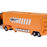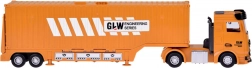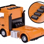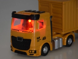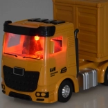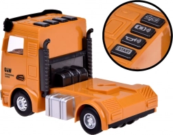 Veľký otočný žeriav s hákom na realistické dvíhanie nákladu. Ťahač ponúka zvuky klaksónu, cúvania, melódie a blikajúce svetlá.