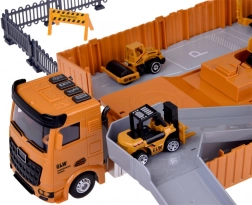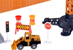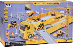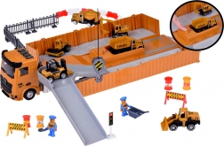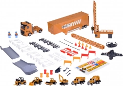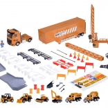 V balení je až 6 stavebných vozidiel (bagre, mix, valec, nakladač, vyklápač, vysokozdvižný vozík) s otáčajúcimi sa kolesami a pohyblivými dielmi, ktoré verne napodobňujú skutočné stroje. Veľký otočný žeriav s hákom umožní dvíhať drobné predmety a doplní realistickú atmosféru stavby. Ťahač je navyše interaktívny – 4 tlačidlá spúšťajú zvuky (klaksón, cúvanie, melódie) a blikajúce červené svetlá.