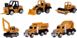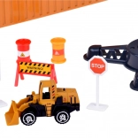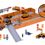 Súčasťou je 6 mini strojov s otáčajúcimi sa kolesami a funkčnými prvkami – bager, vysokozdvižný vozík, miešačka, valec, nakladač a sklápač.
