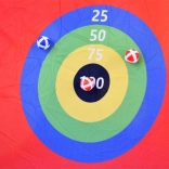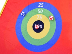 .Trojuholníkový stan: Má terč na strieľanie loptičiek na suchý zips a špeciálne otvory, ktoré zodpovedajú farbám loptičiek.