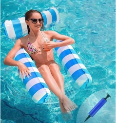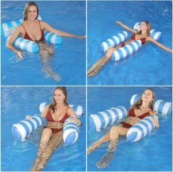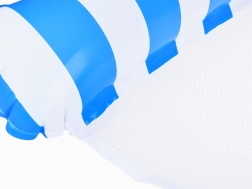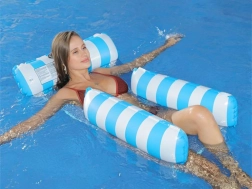 Rozlúčte sa s obyčajnou plávajúcou matracou a privítajte jedinečné riešenie - ležadlo v štýle hamak, ideálne pre horúce letné dni. Navrhnuté pre umožnenie čiastočného ponorenia do vody, takže budete pri opaľovaní vždy v príjemnom chládku. Ležadlo je vybavené nafukovacími časťami vyrobenými z odolného PVC a spojené nylonovou sieťkou pre maximálne pohodlie. Jeho elegantný modro-biely dizajn sa stane ozdobou vašich dovolenkových fotografií.