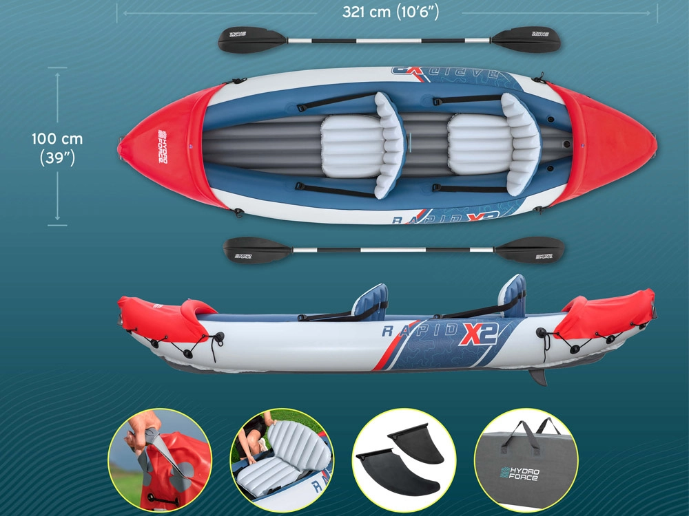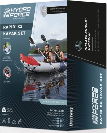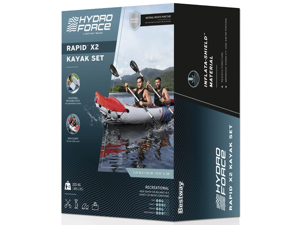 - Nosnosť až 160 kg a rozmery po nafúknutí 321 × 88 cm pre pohodlné pádlovanie vo dvojici