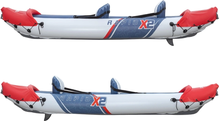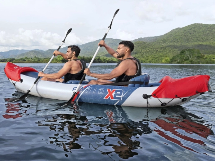 Užite si pokojné jazerá, zátoky aj pomalšie rieky v tandemovom kajaku, ktorý kombinuje pevnú a odolnú PVC konštrukciu (0,57 mm) s mimoriadnou praktičnosťou. Vďaka rýchlym skrutkovacím/baoston ventilom sa ľahko nafukuje aj vyfukuje, zatiaľ čo mäkká I‑beam podlaha zaisťuje tuhosť a pohodlie pri pádlovaní.